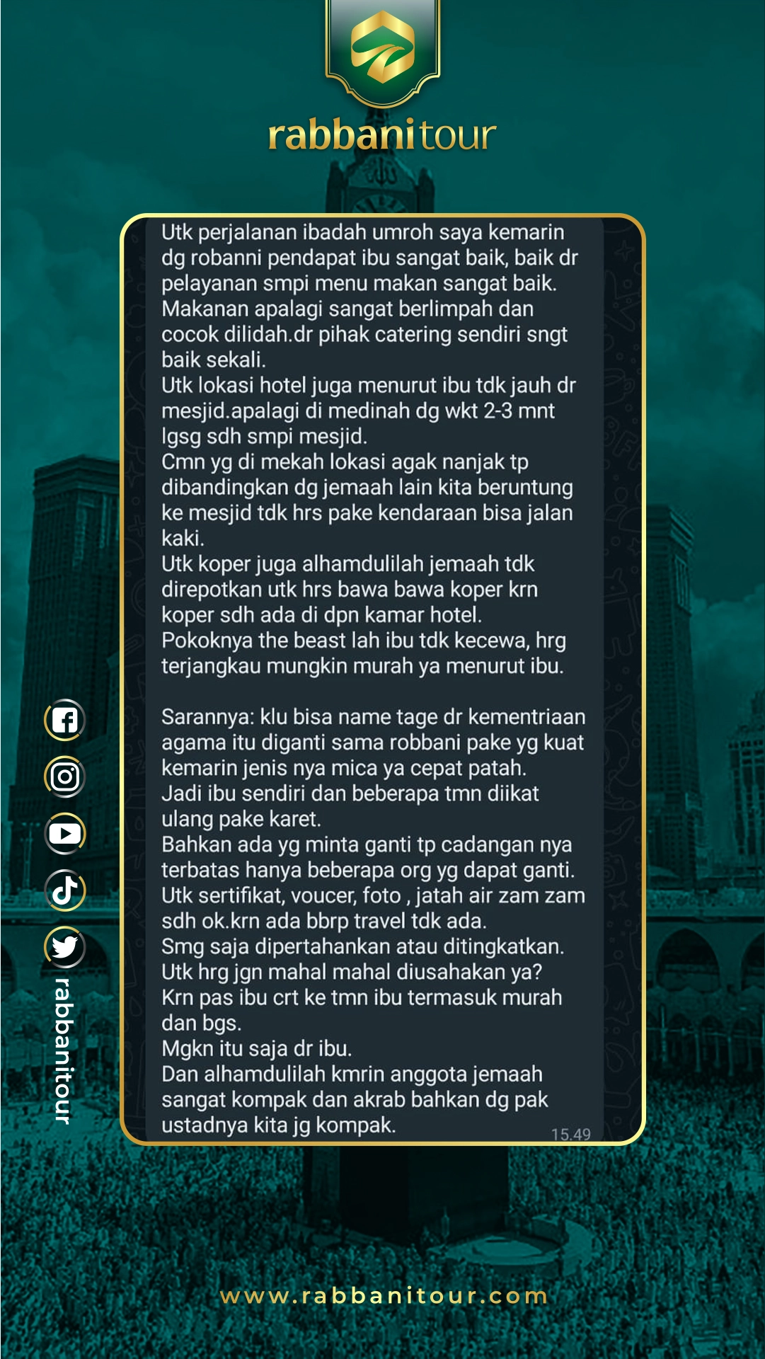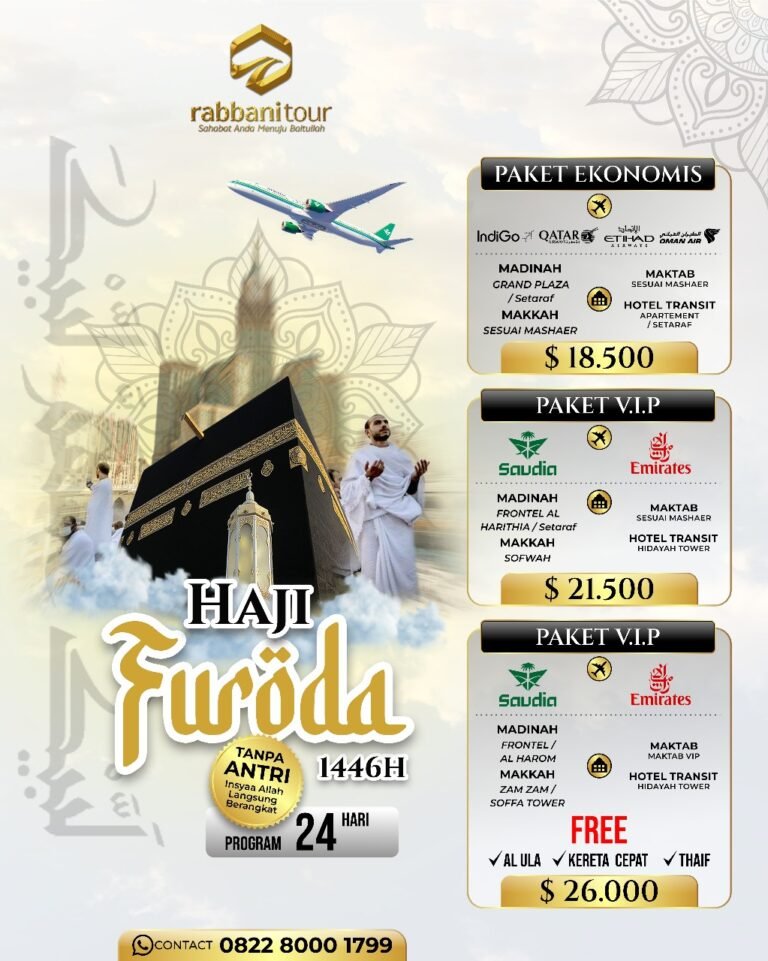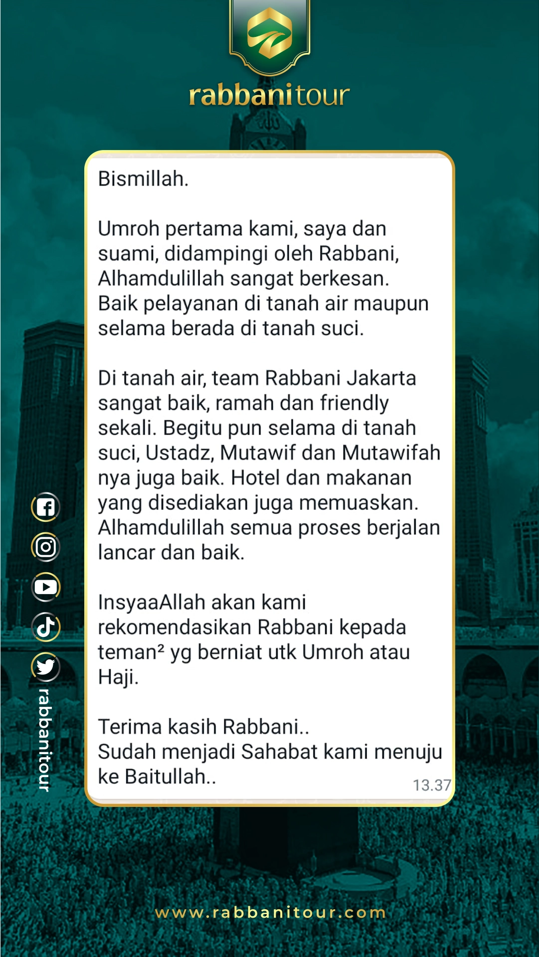 Rabbanitour memberikan banyak pilihan paket haji plus reguler maupun umroh plus ke berbagai Negara.